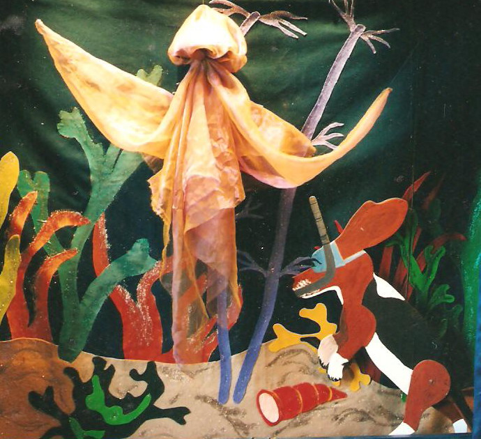 Techniques utilisées : Marionnette à gaine, à fils, ombres et marionnette portée.